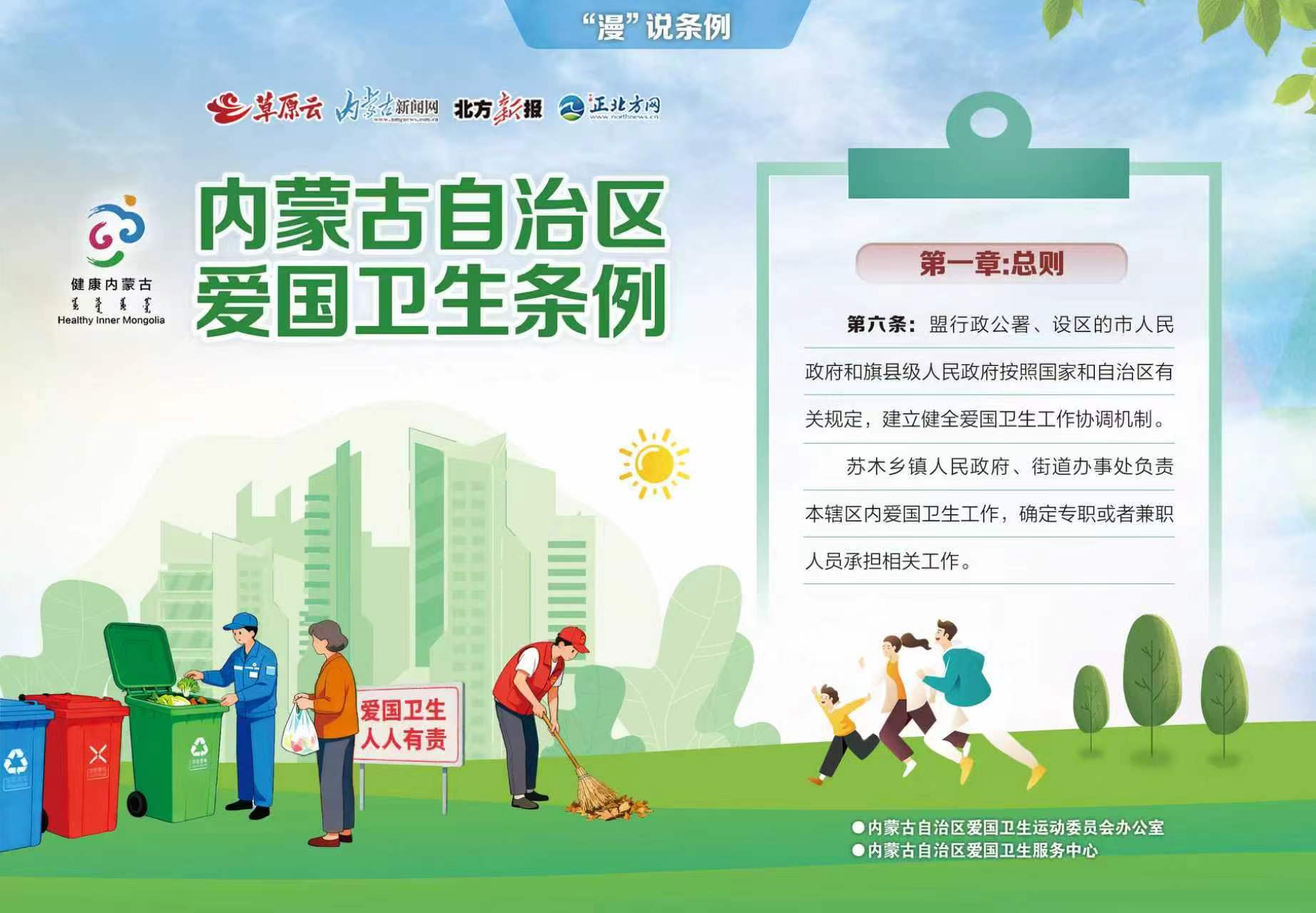 第六条 盟行政公署、设区的市人民政府和旗县级人民政府按照国家和自治区有关规定,建立健全爱国卫生工作协调机制。 苏木乡镇人民政府、街道办事处负责本辖区内爱国卫生工作,确定专职或者兼职人员承担相关工作。