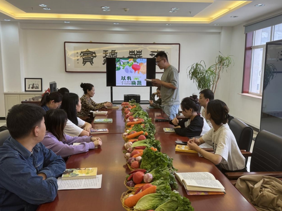 读书分享环节将活动气氛拉满。大家围坐在一起,分享自己带来书籍的感悟与心得。有人因《暴力沟通》,畅谈对沟通与暴力的思考;也有人从实用的生活类书籍出发,分享从书中习得的烹饪、养生技巧,引发阵阵共鸣。“这样的活动太有意义了!既能处理闲置书籍,又能换到新鲜蔬菜!”职工郅晨璐说道。