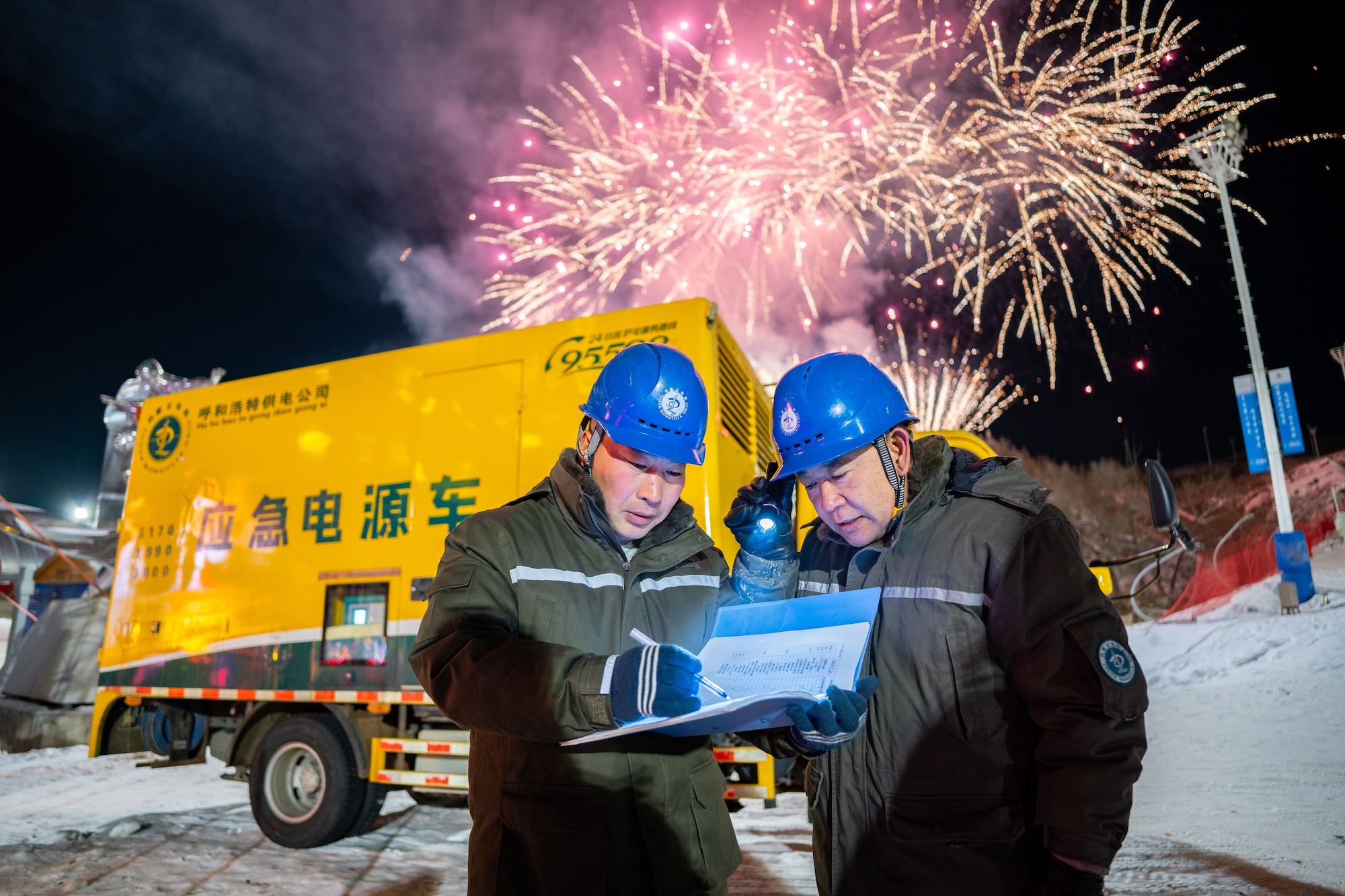 呼和浩特马鬃山滑雪场“雪中跨年狂欢计划”热力启幕,大批年青人齐聚冰雪天地,在音乐与欢笑声中静待2026年到来。为保障跨年夜活动电力供应稳定,内蒙古电力集团呼和浩特供电金桥供电公司提前谋划、精准施策,联合保电管理处组建专项保电团队,为这场冰雪狂欢护航。