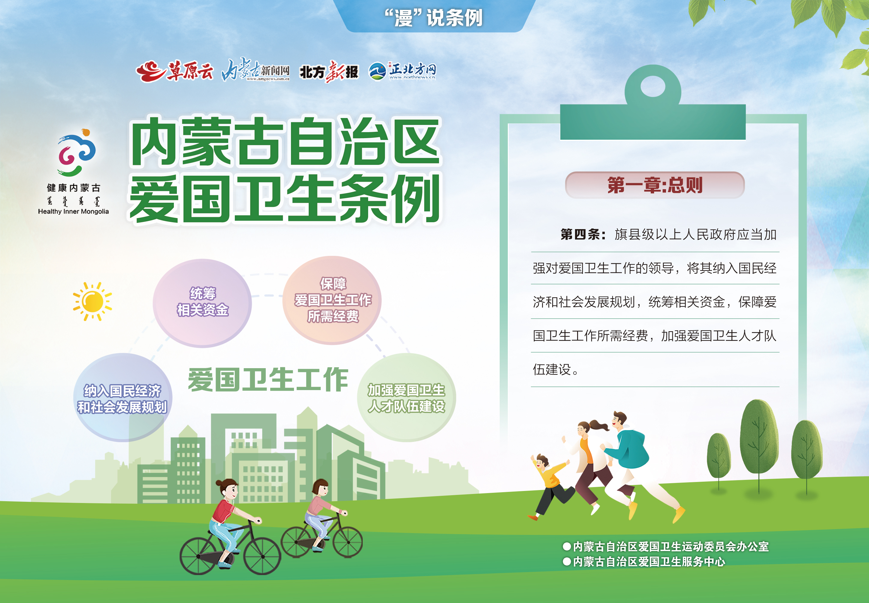 第四条 旗县级以上人民政府应当加强对爱国卫生工作的领导,将其纳入国民经济和社会发展规划,统筹相关资金,保障爱国卫生工作所需经费,加强爱国卫生人才队伍建设。