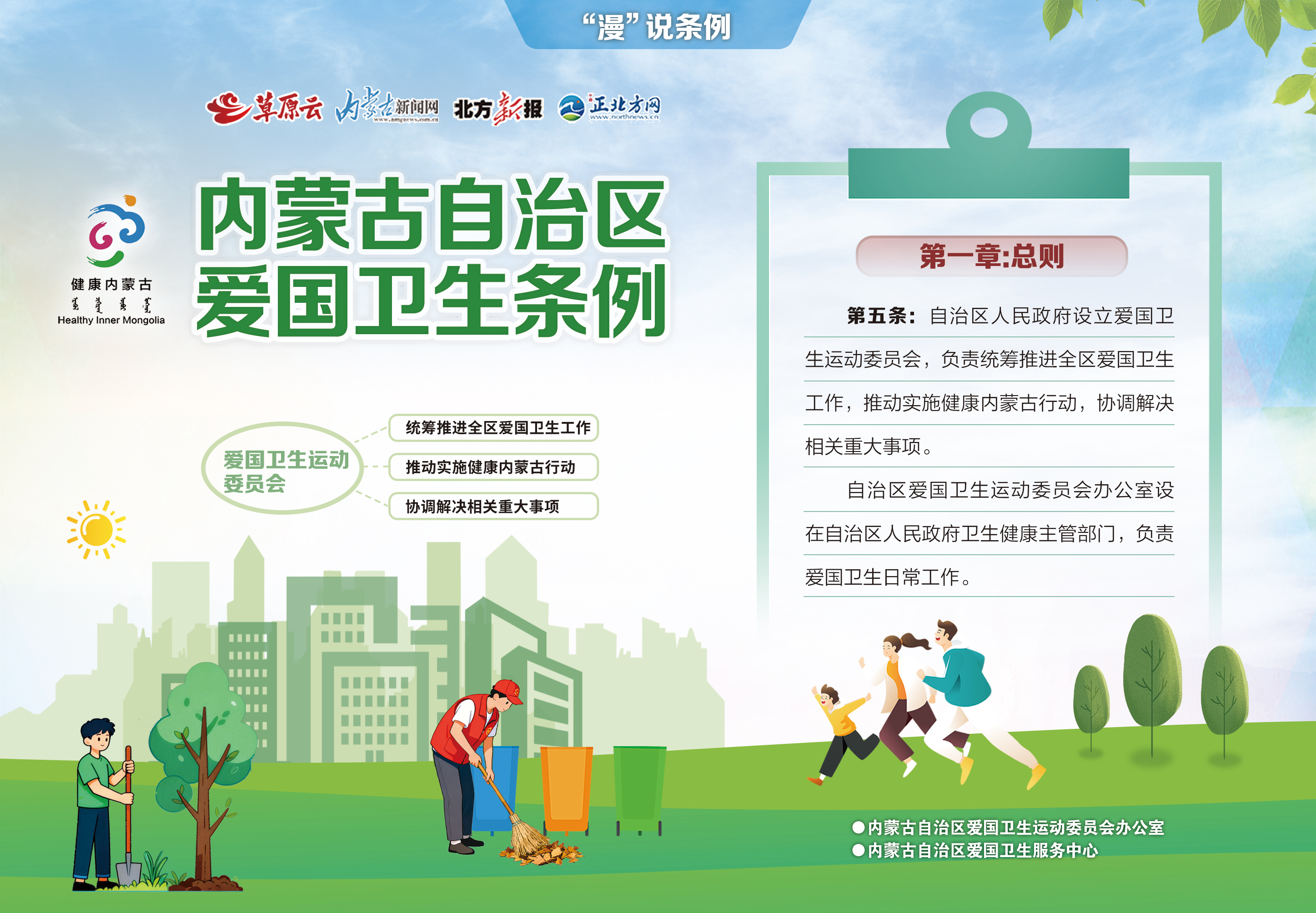 第五条 自治区人民政府设立爱国卫生运动委员会,负责统筹推进全区爱国卫生工作,推动实施健康内蒙古行动,协调解决相关重大事项。 自治区爱国卫生运动委员会办公室设在自治区人民政府卫生健康主管部门,负责爱国卫生日常工作。