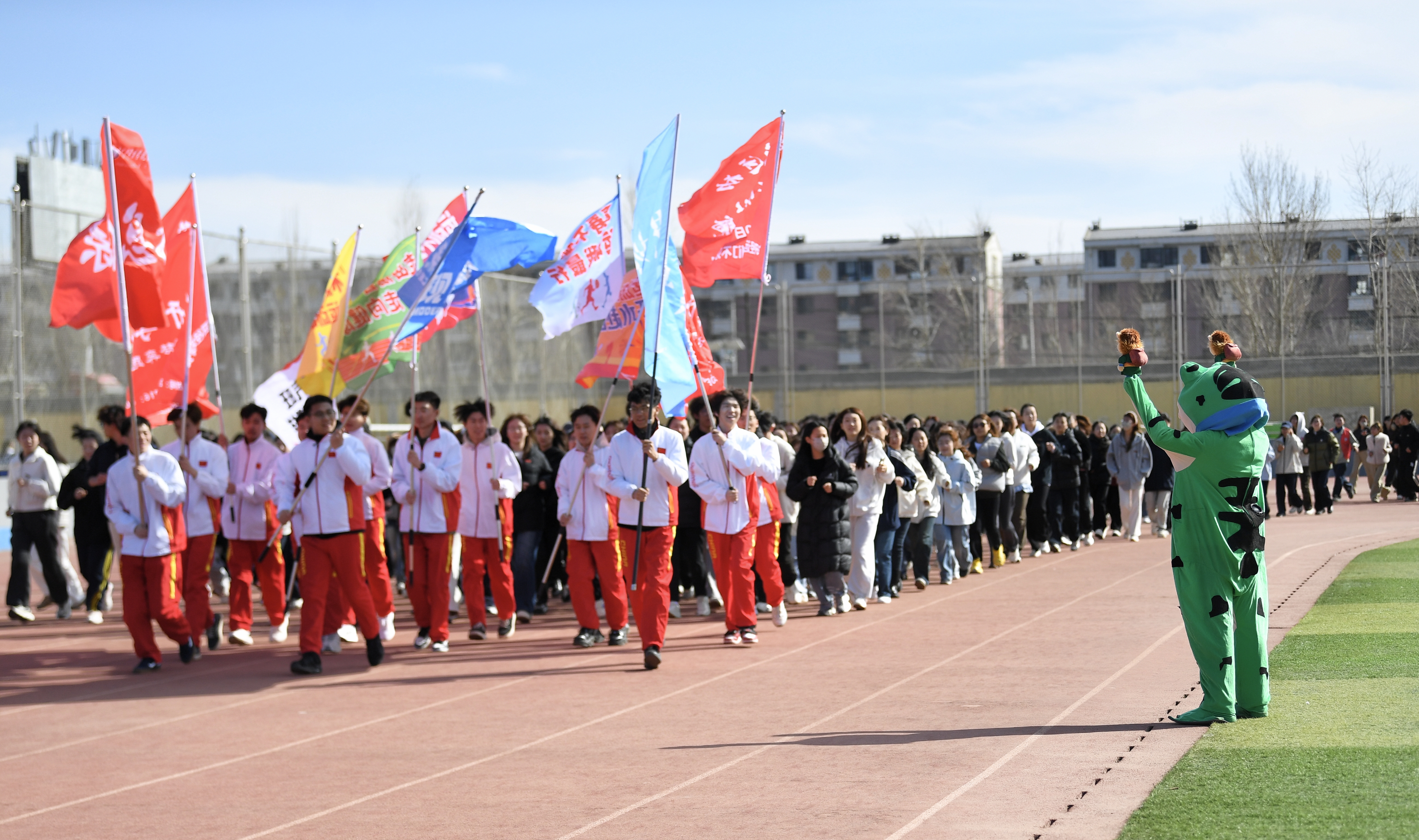 3月10日,内蒙古商贸职业学院现代服务系、信息技术系、艺术设计系联合举办“开学第一跑·奋进新征程”主题活动。