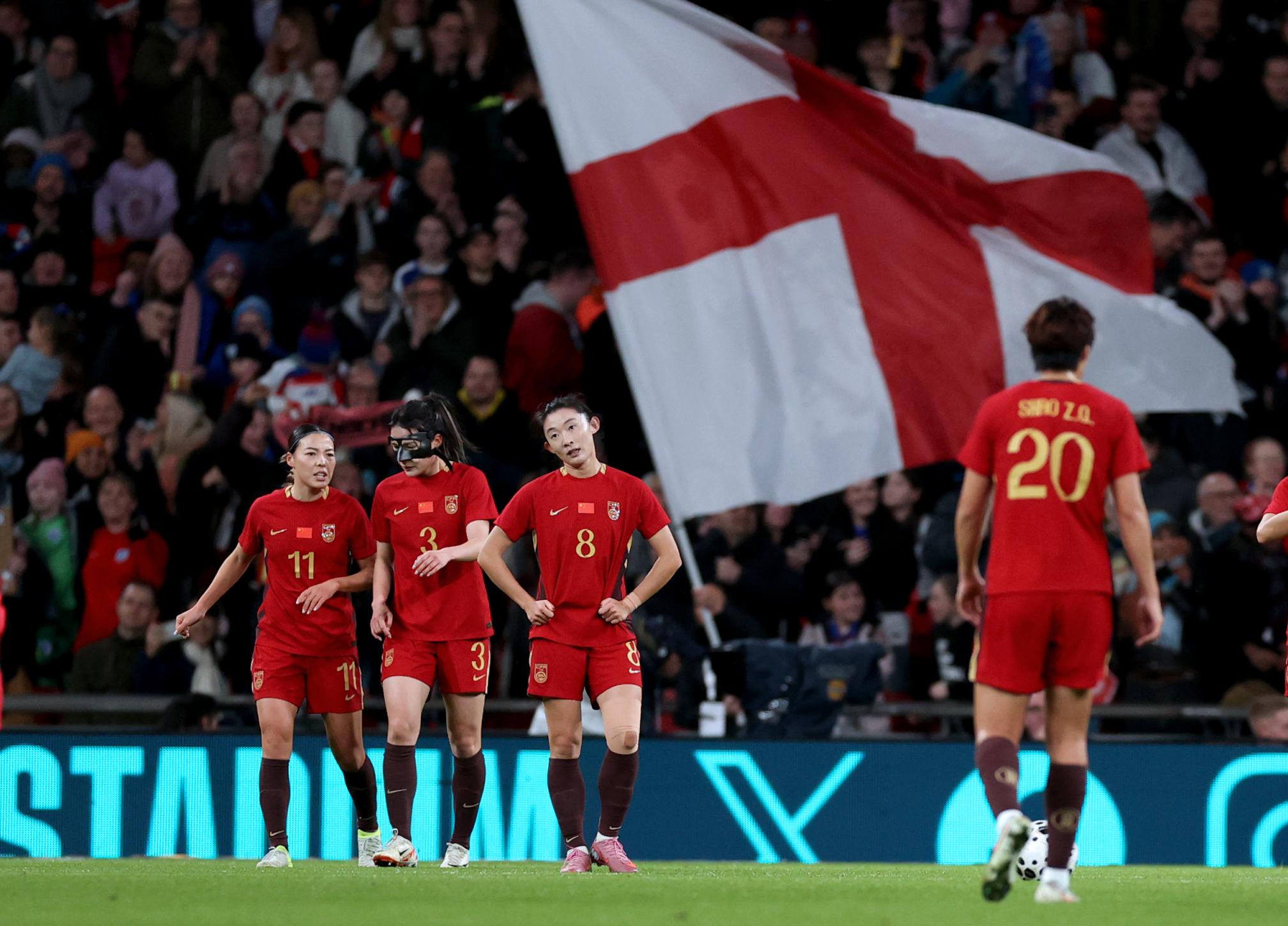 2025年11月,中国女足在热身赛中0比8不敌英格兰队。图片来源:新华社