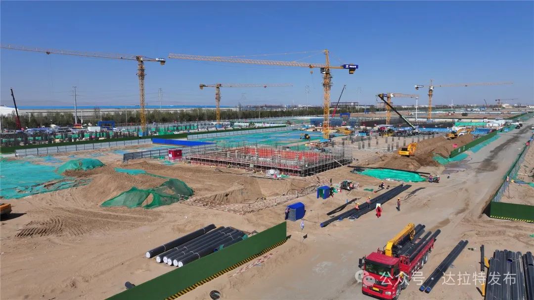 在达拉特经济开发区,塔吊长臂挥舞、吊机精准作业、工人身影穿梭,荣信化工年产80万吨烯烃项目施工现场一片繁忙景象,土建工程已初显规模,整个项目正快马加鞭,稳步推进。