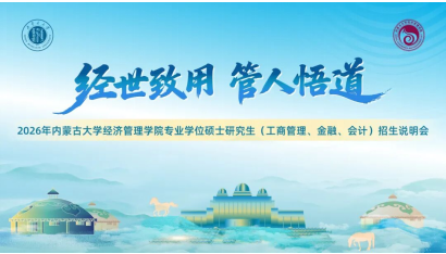 2026年内蒙古大学经济管理学院专业学位硕士研究生(EMBA、MBA、MF、MPAcc)将举行“招生说明会”,敬请关注,欢迎参加!