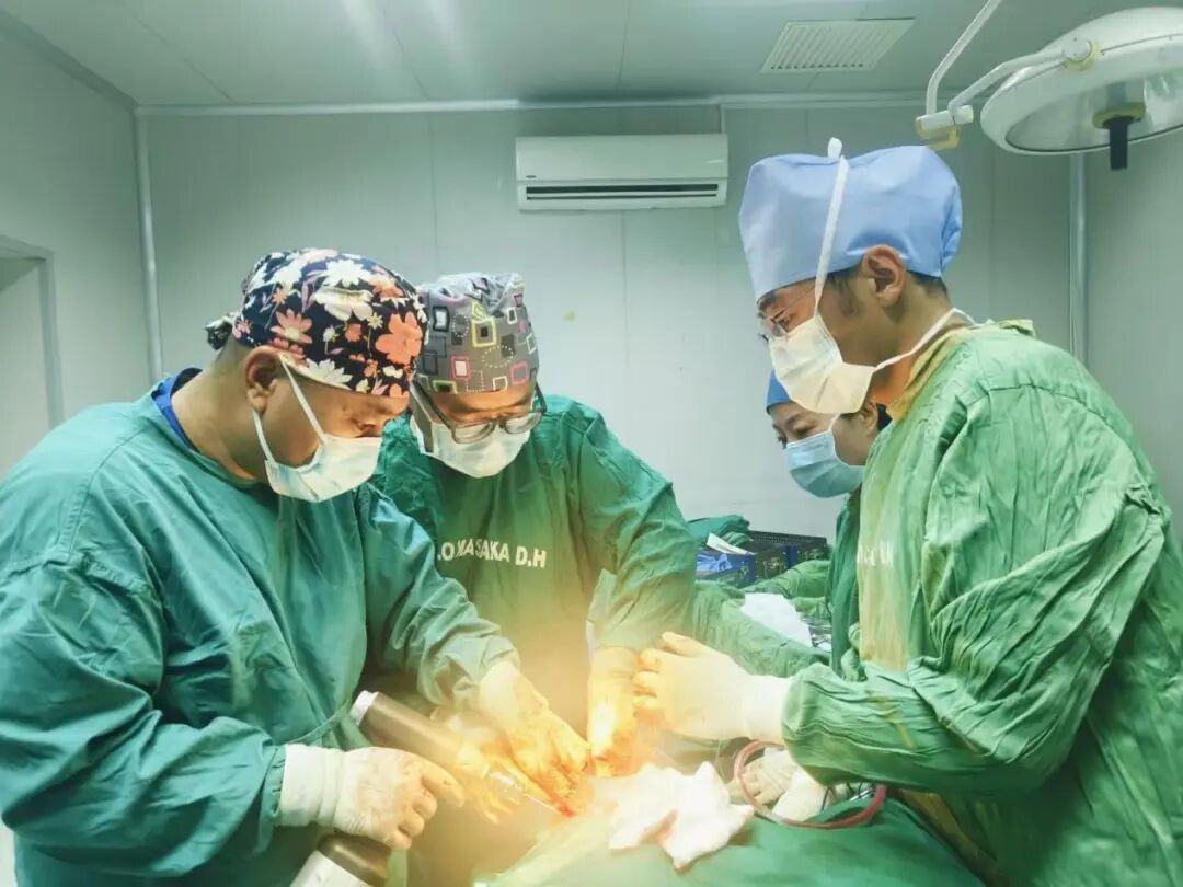 2025年12月底,医疗队的各项工作依然紧张。不久前,王永祥因长期的高强度工作,突发输尿管结石,绞痛难眠,检查显示结石无法体外碎石,只能保守治疗。而31日当天,手术室排满了三台骨科手术。“疼痛可以忍,但患者不能等。”他服下止痛药,毅然走进手术室,从清晨到傍晚,连续八小时站立操作,冷汗一次次擦去,手中的器械始终沉稳坚定,直到最后一台手术顺利完成,他才短暂休息。