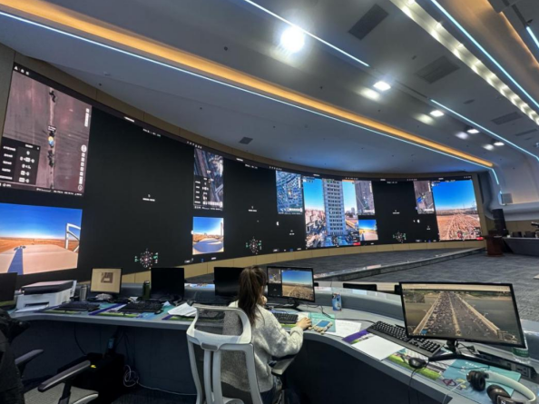 工作人员通过指挥大屏查看无人机实时回传的高清画面